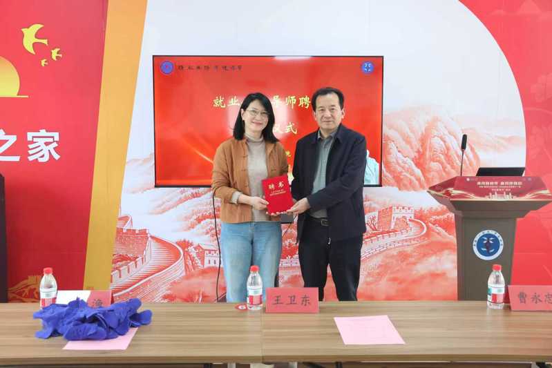 活动现场,王卫东为李小渔颁发台湾自拍av 就业创业导师聘书,曹阳为其颁发台湾自拍av 学生成长导师聘书。