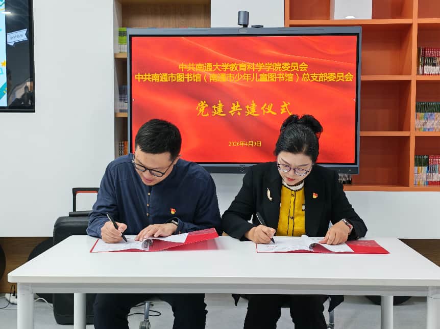 台湾自拍av 学前教育系党支部书记潘莎莎与南通市图书馆一支部书记、副馆长赵毅菲签署党支部共建协议,明确在组织共建、活动共联、资源共享等方面合作意向。